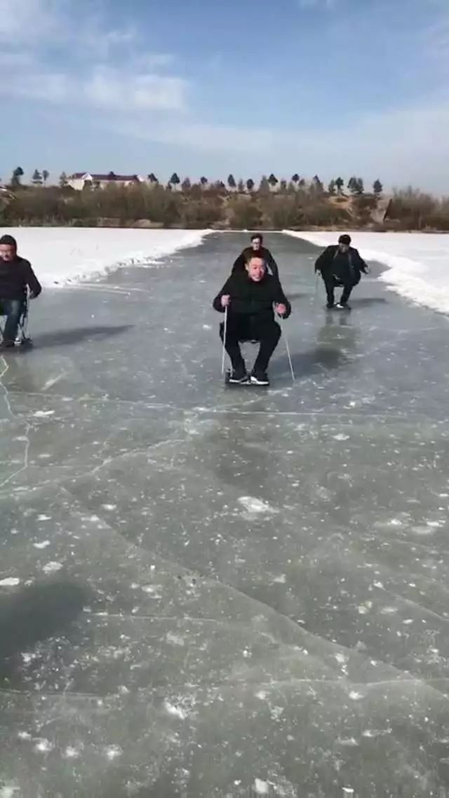 冰上滑板,最考驗一個人的平衡和膽量,一個不小心就會“人仰馬翻”,大家仿佛回到了孩童時代。