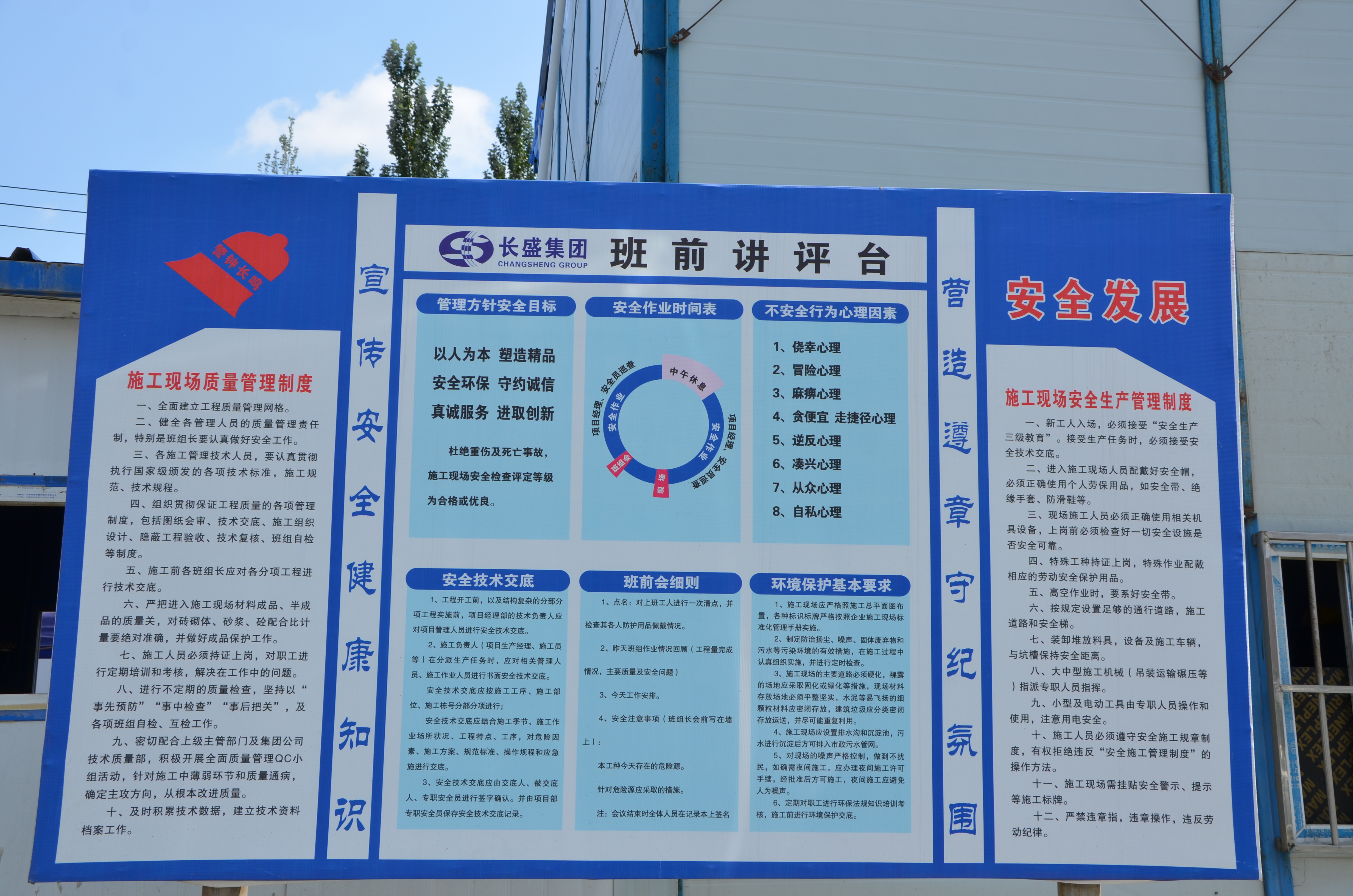 走進(jìn)項(xiàng)目施工現(xiàn)場(chǎng),小編顛覆了對(duì)建筑工地的認(rèn)識(shí),整潔有序的施工現(xiàn)場(chǎng),四處可見張貼整齊的安全警示標(biāo)識(shí),可見長(zhǎng)盛地產(chǎn)公司對(duì)項(xiàng)目安全管理的重視程度。