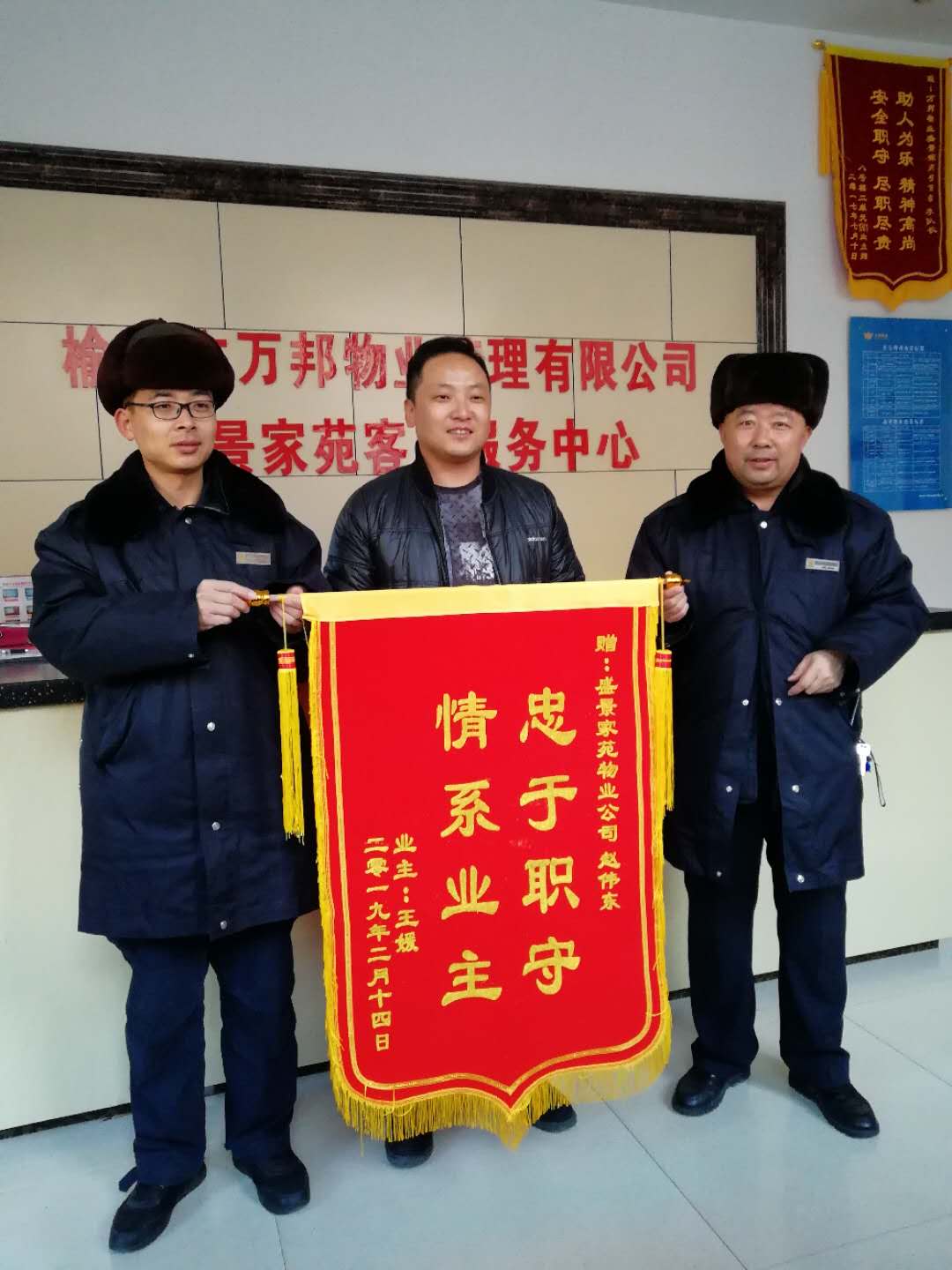 這一舉動感動了業(yè)主,今日業(yè)主親自將錦旗授予我們,大大鼓舞了我們員工的工作熱情。我們必將竭盡全力做好物業(yè)公司的各項工作,情系業(yè)主,服務(wù)業(yè)主。 |