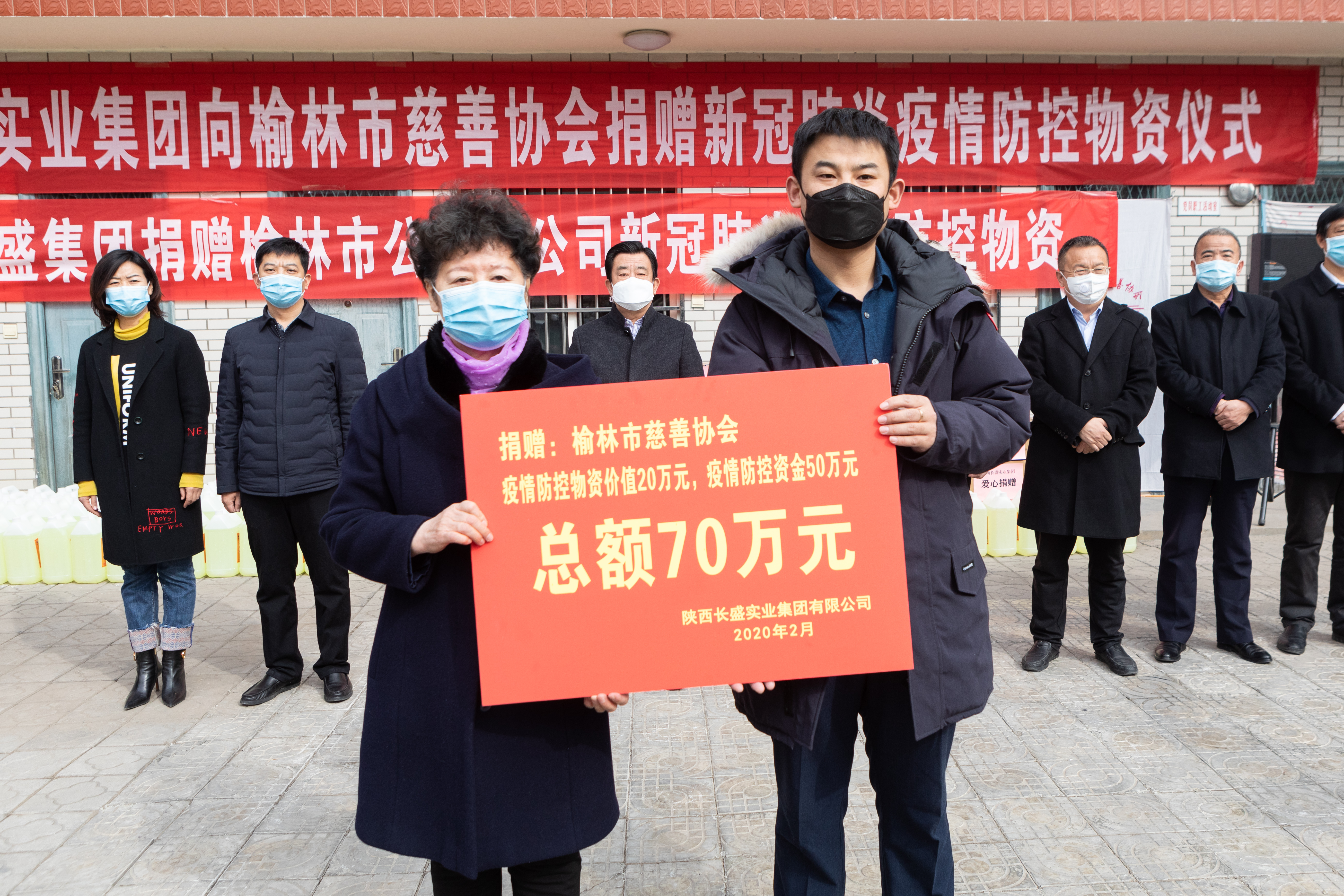 陜西長(zhǎng)盛實(shí)業(yè)集團(tuán)向榆林市慈善協(xié)會(huì)捐贈(zèng)70萬元防疫物資及現(xiàn)金